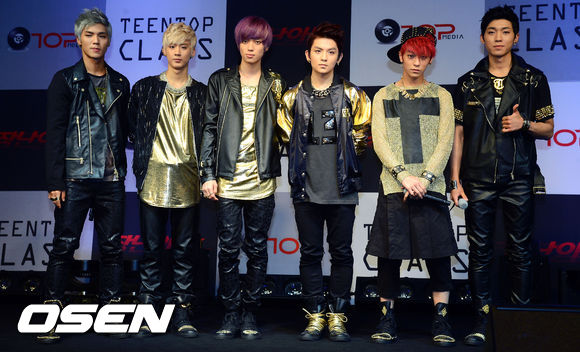 27일 오후 서울 잠원동 프라디아에서 진행된 틴탑 새앨범 '틴탑 클래스(TEEN TOP CLASS)' 기자간담회에서 틴탑이 포토타임을 갖고 있다.