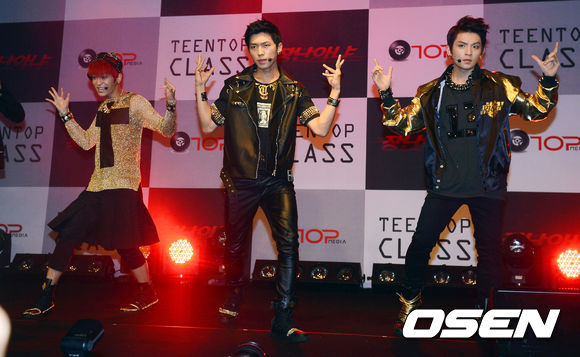 27일 오후 서울 잠원동 프라디아에서 진행된 틴탑 새앨범 '틴탑 클래스(TEEN TOP CLASS)' 기자간담회에서 틴탑이 멋진무대를 선보이고 있다.