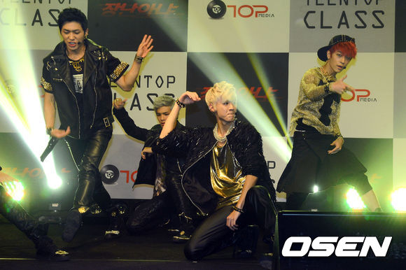 27일 오후 서울 잠원동 프라디아에서 진행된 틴탑 새앨범 '틴탑 클래스(TEEN TOP CLASS)' 기자간담회에서 틴탑이 멋진무대를 선보이고 있다.