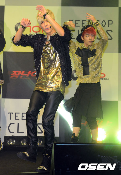 27일 오후 서울 잠원동 프라디아에서 진행된 틴탑 새앨범 '틴탑 클래스(TEEN TOP CLASS)' 기자간담회에서 틴탑이 멋진무대를 선보이고 있다.