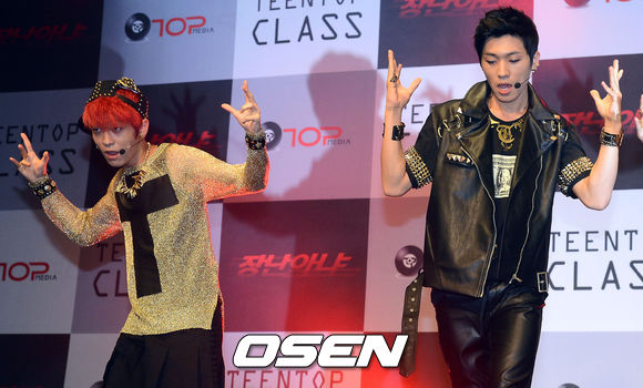 27일 오후 서울 잠원동 프라디아에서 진행된 틴탑 새앨범 '틴탑 클래스(TEEN TOP CLASS)' 기자간담회에서 틴탑이 멋진 무대를 선보이고 있다.