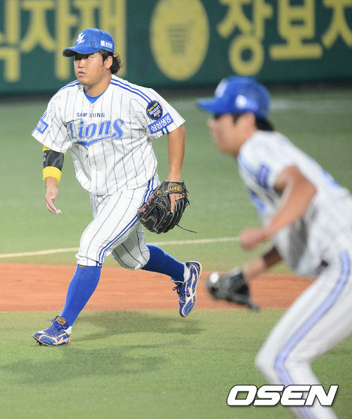 27일 오후 대구구장에서 열린 '2013 한국야쿠르트 세븐 프로야구' 삼성 라이온즈 와 NC 다이노스 경기, 3회초 2사 김종호의 기습번트 자세때 삼성 박석민 3루수가 수비를 펼치고 있다.