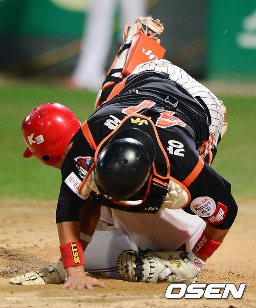 안치홍-강민호, '홈 접전 결과는...세이프'
