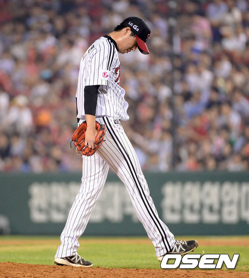 27일 오후 서울 잠실야구장에서 열린 2013 한국야쿠르트 세븐프로야구 LG 트윈스와 넥센 히어로즈의 경기, 6회초 LG 우규민이 마운드를 내려가고 있다.