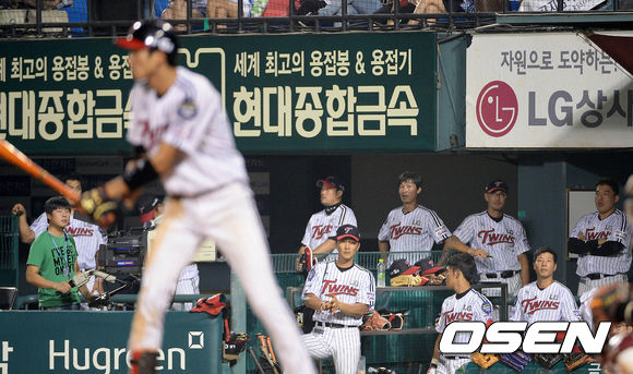 9회말 LG 김용의 타석 때 LG 선수들이 덕아웃에서 경기를 바라보고 있다. /sunday@osen.co.kr
