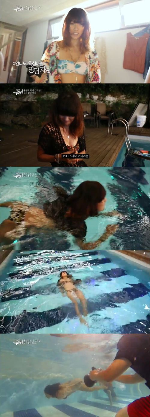 이날 이효리는 스피카가 촬영을 준비하는 동안 야외 수영장에 입수했다. 특히 이효리는 비키니를 입고 탄탄하고 섹시한 몸매를 과감하게 노출해 시선을 사로잡았다.