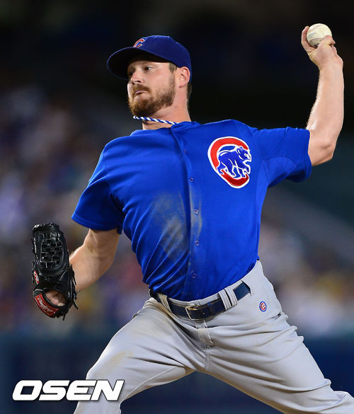 28일 (이하 한국시간) 미국 캘리포니아주 로스앤젤레스 다저스타디움에서 열린 2013 메이저리그 LA 다저스와 시카고 컵스의 경기, 시카고 컵스 선발 드래비스 우드가 힘차게 공을 뿌리고 있다.