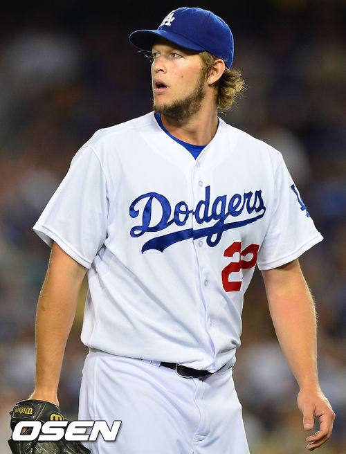 28일 (이하 한국시간) 미국 캘리포니아주 로스앤젤레스 다저스타디움에서 열린 2013 메이저리그 LA 다저스와 시카고 컵스의 경기, 3회초 1실점 후 이닝을 마무리 한 다저스 선발 클레이튼 커쇼가 덕아웃으로 들어가며 전광판을 바라보고 있다.