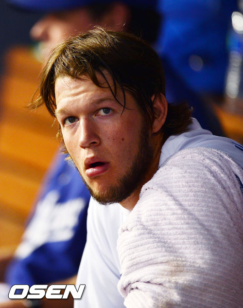 28일 (이하 한국시간) 미국 캘리포니아주 로스앤젤레스 다저스타디움에서 열린 2013 메이저리그 LA 다저스와 시카고 컵스의 경기, 3회초 1실점 후 이닝을 마무리 한 다저스 선발 클레이튼 커쇼가 덕아웃에서 아쉬운 표정으로 전광판을 바라보고 있다.