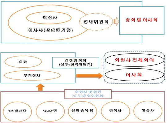 ‘넥스트e스포츠 액션플랜#1’의 기본적인 방향은 협회 조직 및 의사결정 구조의 혁신이다. 전병헌 회장이 취임하기 이전 제4기까지의 협회를 보면, 많은 e스포츠 관계자들로부터 ‘창단팀 기업의 협의회’라고 지적받았다. 협회가 그렇게 운영되어 온 것은 사실이다. 팀을 창단해서 보유한 기업들이 회원사이자 이사사였고, 협회의 운영비 전액을 이사사 회비와 회장사의 투자로 부담해 왔기 때문에 협회의 모든 의사결정은 회장사와 이사사를 통해 이뤄졌었다. 그러나 이러한 시스템이 잘못된 것은 아니었다.