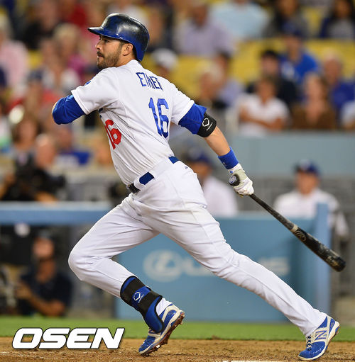 28일 (이하 한국시간) 미국 캘리포니아주 로스앤젤레스 다저스타디움에서 열린 2013 메이저리그 LA 다저스와 시카고 컵스의 경기, 8회말 1사 주자 1,2루 다저스 이디어가 중전 1타점 적시타를 날리고 있다.