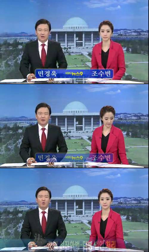 이와 관련해 우리나라에서도 비슷한 방송 사고가 발생한 적이 있어 다시금 화제를 모으고 있다. 지난해 5월 2일 방송된 KBS '뉴스9'에서 헤드라인을 소개하던 중 조수빈 아나운서의 휴대전화 벨소리가 울린 것. 이에 조 아나운서는 당황하지 않고 핸드폰을 끄고 뉴스를 이어가는 등 침착하게 대처해 시선을 사로잡았다.