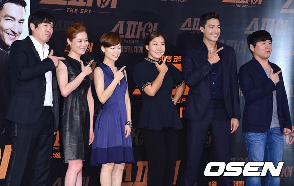 28일 오후 서울 행당동 CGV왕십리에서 열린 영화 '스파이'(이승준 감독) 언론시사회에 참석한 배우들과 이승준 감독이 모두 모여 포토타임을 갖고 있다.