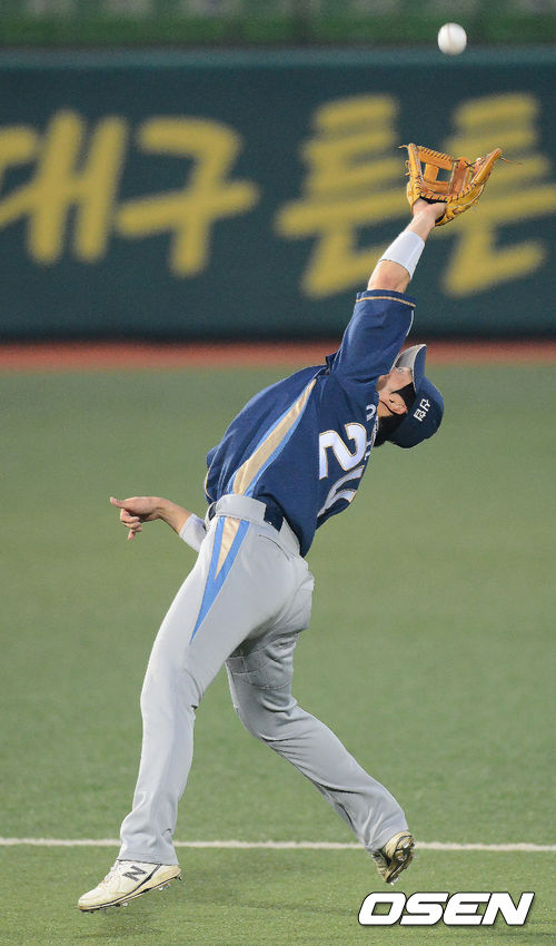28일 오후 대구구장에서 열린 '2013 한국야쿠르트 세븐 프로야구' 삼성 라이온즈 와 NC 다이노스 경기, 2회말 무사 1루 박석민의 내야 높이뜬공을 NC 이상호 유격수가 어렵게 잡아내고 있다.