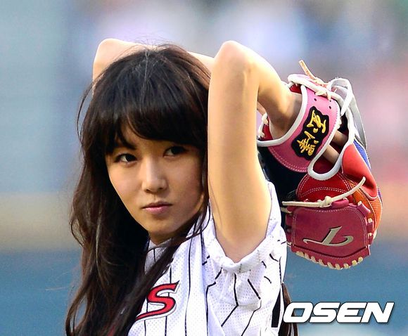 28일 오후 서울 잠실구장에서 열린 '2013 한국야쿠르트 세븐 프로야구' LG 트윈스와 넥센 히어로즈의 경기 시작 전 이정현이 멋진 폼으로 시구를 하고 있다.