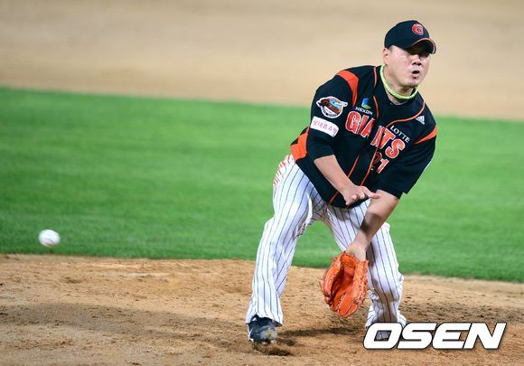 28일 오후 광주 무등경기장에서 열린 '2013 한국야쿠르트 세븐 프로야구' KIA 타이거즈와 롯데 자이언츠의 경기, 5회말 1사 2루에서 롯데 송승준이 KIA 안치홍에 중전 안타로 동점을 허용하고 있다.