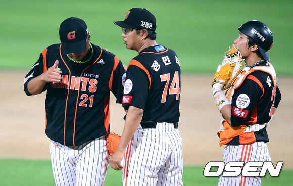 28일 오후 광주 무등경기장에서 열린 '2013 한국야쿠르트 세븐 프로야구' KIA 타이거즈와 롯데 자이언츠의 경기, 5회말 1사 2루에서 롯데 송승준이 KIA 안치홍에 동점 적시타를 허용하며 강판당하고 있다.