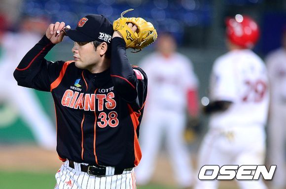 28일 오후 광주 무등경기장에서 열린 '2013 한국야쿠르트 세븐 프로야구' KIA 타이거즈와 롯데 자이언츠의 경기, 5회말 1사 1,2루에서 마운드에 오른 롯데 정대현이 KIA 나지완을 병살로 처리하며 위기에서 벗어나고 있다.