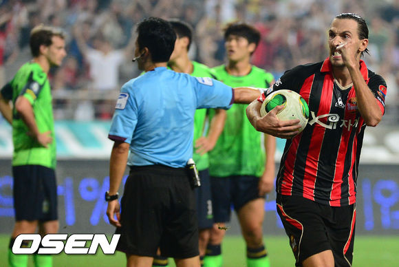28일 오후 서울 상암동 서울월드컵경기장에서 열린 '현대오일뱅크 K리그 클래식 2013' FC 서울과 전북 현대의 경기, 후반 FC서울 데얀이 동점골을 넣고 환호하고 있다