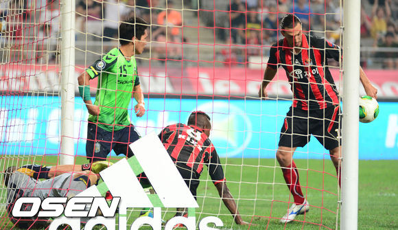 28일 오후 서울 상암동 서울월드컵경기장에서 열린 '현대오일뱅크 K리그 클래식 2013' FC 서울과 전북 현대의 경기, 후반 FC서울 데얀이 동점골을 넣고 환호하고 있다