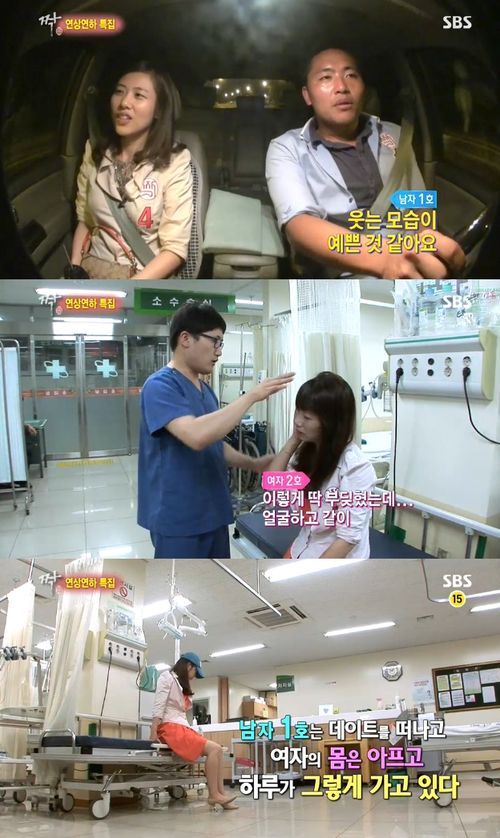 두 사람이 데이트를 하는 동안 체육대회에서 다친 여자 2호는 혼자 외롭게 병원을 다녀왔고 가벼운 뇌진탕이라는 진단을 받았다.