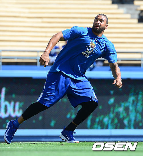 29일 (이하 한국시간) 미국 캘리포니아주 로스앤젤레스 다저스타디움에서 2013 메이저리그 LA 다저스와 시카고 컵스의 경기가 열릴 예정인 가운데 다저스의 맷 켐프가 재활훈련을 하고 있다.