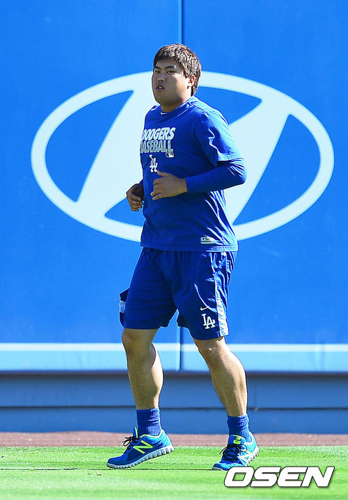 29일 (이하 한국시간) 미국 캘리포니아주 로스앤젤레스 다저스타디움에서 2013 메이저리그 LA 다저스와 시카고 컵스의 경기가 열릴 예정인 가운데 다저스의 류현진이 가장 먼저 그라운드로 나와 러닝 훈련을 하고 있다.