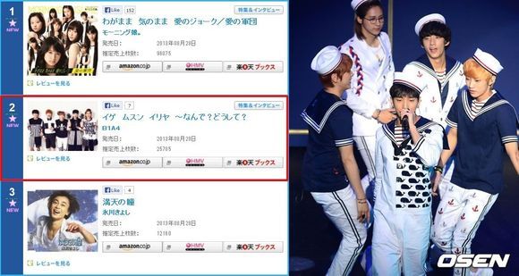 29일 오전 일본 최대 음반사이트인 오리콘 데일리차트에 따르면 지난 28일 발매된 B1A4의 세 번째 일본 싱글인 '이게 무슨 일이야'는 당일 2만 5705장의 판매고를 올리며 차트 2위에 올라섰다.