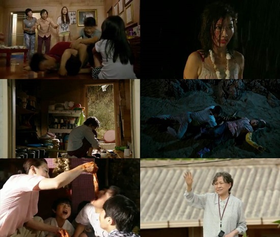 지난 28일 오후 방송된 '엄마의 섬'은 4남매가 어머니의 생일, 외딴 섬의 어머니를 찾으며 시작됐다. 이들은 어머니의 생신 날 몸싸움을 벌이다 두 달 만에 돌아와서는 그 없는 빈 집에 상다리가 휘도록 차려진 차례상을 보고 안도하는 사람들이다. 이후 4남매는 어머니가 없는 빈 집에서 어린 손녀 사랑이에게 빙의된 귀신과 자기 아이를 잃고 미쳐버린 김여사에게 공격을 받으며 어머니의 죽음과 가족이 숨기고 있던 상처를 드러냈다.