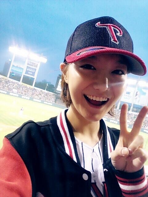 사진 속 신소율은 잠실야구장에서 밝게 브이자를 그리며 카메라를 바라보고 있다. 점퍼 속 LG 트윈스 유니폼이 그가 LG팬임을 입증해주고 있다.