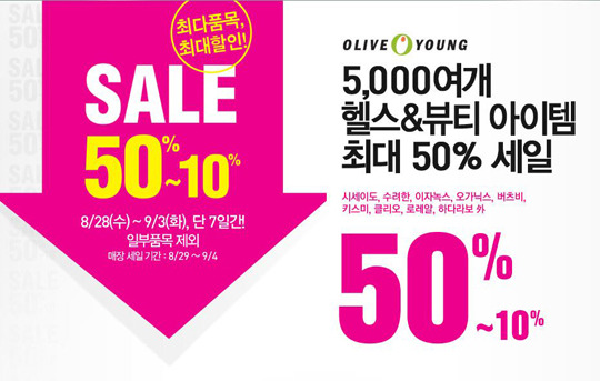 [OSEN=이슈팀] 드레그스토어 CJ 올리브영이 최대 50% 할인 행사를 펼친다.