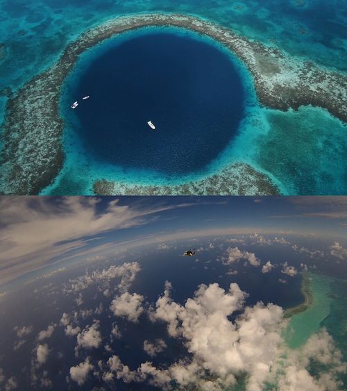 에메랄드 빛 카리브 해에 동그랗게 놓인 ‘지구의 눈’ 그레이트 블루홀은 ‘신이 만든 함정’이라고도 불리며 많은 사람들의 로망이 된 곳으로 스카이다이빙을 하는 것은 세계적으로도 이례적인 것 일이다.