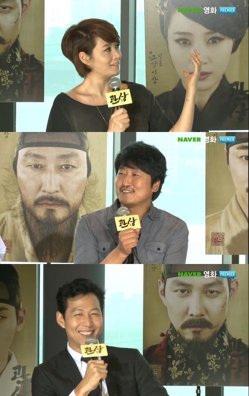 송강호는 29일 영화 '관상' 네이버 라이브 쇼케이스에서 "매력적인 캐릭터들이 포진돼 있어 막강 캐스팅을 짐작하긴 했다. 그 중 김혜수는 서프라이즈한 캐스팅으로, 그는 한 작품을 책임지는 주연배우가 아닌가"라며 고마움을 표시했다.