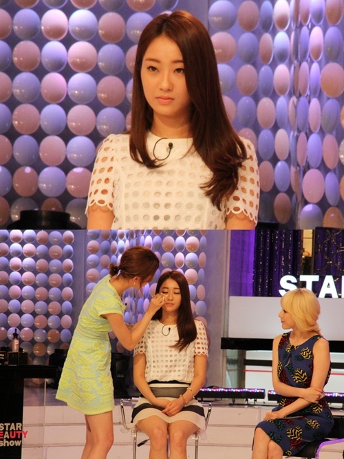 걸그룹 나인뮤지스 멤버 경리가 일일 메이크업 아티스트로 변신한 혜미를 위해 민낯으로 모델로 나섰다.