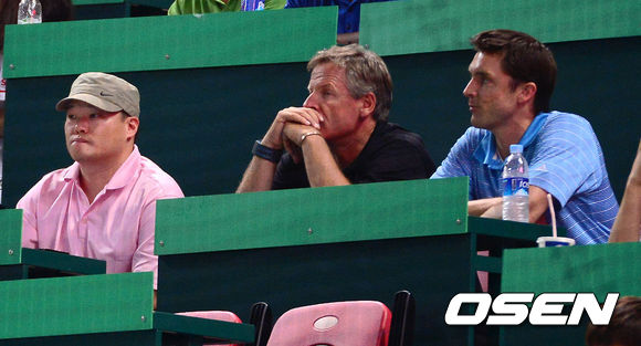 29일 오후 인천 문학구장에서 열린 '2013 한국야쿠르트 세븐 프로야구' SK 와이번스와 삼성 라이온즈의 경기, 8회말 삼성이 2-5로 지고 있자 삼성 오승환을 보기 위해 경기장을 찾은 MLB 스카우터들이 아쉬운 표정으로 경기를 지켜보고 있다