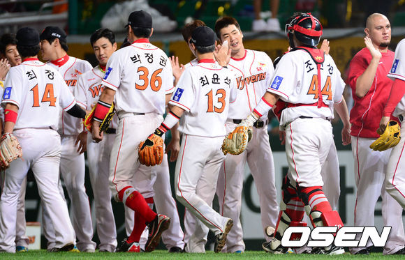 경기종료 후 SK 선수들이 승리의 기쁨을 나누고 있다. / soul1014@osen.co.kr