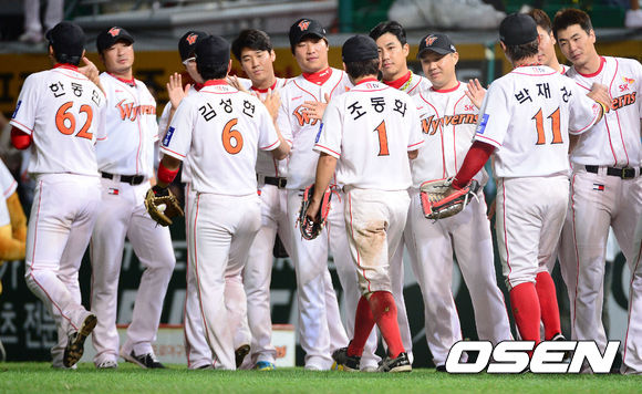 경기종료 후 SK 선수들이 승리의 기쁨을 나누고 있다. / soul1014@osen.co.kr