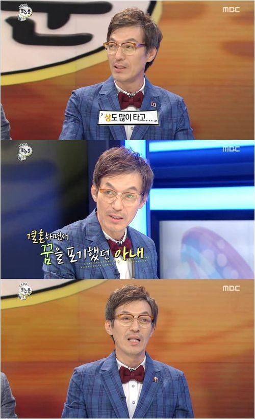 배우 김갑수가 연극배우였던 아내가 자신 때문에 꿈을 포기했다고 털어놨다.