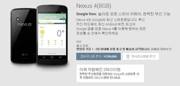 30일 한국 구글플레이 공식홈페이지에 "최첨단 하드웨어와 최신 버전의 안드로이드를 더욱 저렴한 가격에 만나세요"라며 '넥서스4'의 가격인하를 알렸다.