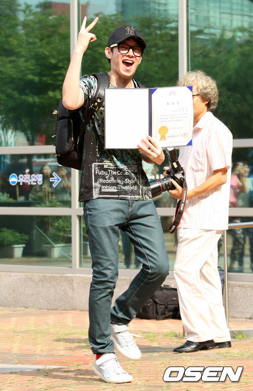 김희철은 팬들의 함성 속에 구청장으로 받은 표창장을 품에 안고 씩씩한 걸음걸이로 걸어나왔다. 환한 미소와 함께 표창장을 자랑하듯 손으로 브이를 연신 그려가며 자신의 차량으로 향했다.
