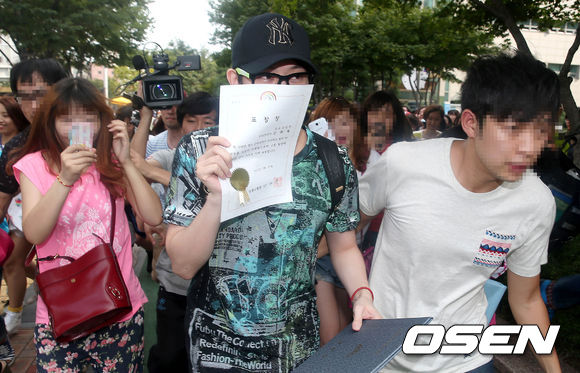 슈퍼주니어 김희철이 표창장을 보이며 차량으로 이동하고 있다.