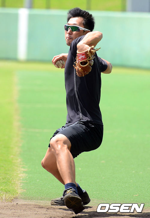 제4회 니베아 맨 컵 전국생활체육야구대회 스페셜 이벤트 '한-일 사회인야구 드림리그' 출전을 위해 오키나와를 찾은 '니베아 맨 올스타팀' 선수들이 30일 오전 일본 오키나와 나하시 셀룰러 스타디움을 찾아 훈련을 하고 있다.