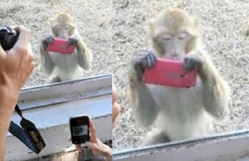 최근 온라인 커뮤니티 게시판에는 ‘사람 찍는 원숭이’라는 제목으로 한 장의 사진이 올라왔다. 원숭이가 스마트폰을 이용해 자신을 촬영하고 있는 관람객을 거꾸로 촬영하는 듯한 모습이었다.