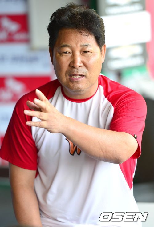 30일 오후 인천 문학구장에서 열리는 '2013 한국야쿠르트 세븐 프로야구' SK 와이번스 대 삼성 라이온즈의 경기를 앞두고, SK 이만수 감독이 취재진과 대화를 나누고 있다.