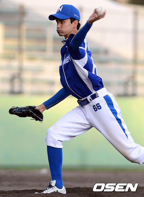 30일 오후 일본 오키나와 나하시 셀룰러 스타디움에서 열린 '제4회 니베아 맨 컵 전국생활체육야구대회 스페셜 이벤트 한-일 사회인야구 드림리그' 경기 4회초 니베아 맨 올스타팀 김용덕이 공을 뿌리고 있다.