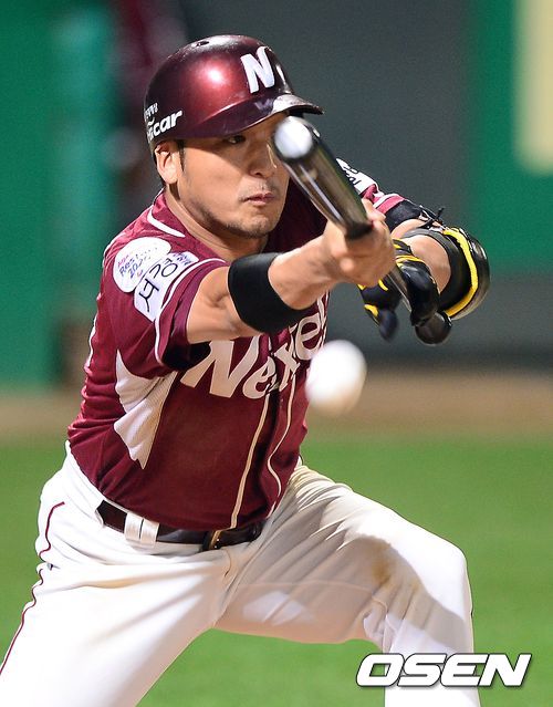 30일 오후 광주 무등경기장에서 열린 '2013 한국야쿠르트 세븐 프로야구' KIA 타이거즈와 넥센 히어로즈의 경기, 5회초 1사 1,3루에서 넥센 이택근이 희생번트를 시도하고 있다. 이택근의 번트에 3루주자 서건창 홈인.