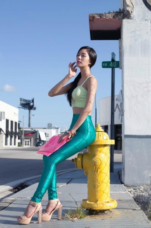 사진 속 클라라는 노란 탱크톱에 초록색 하이웨스트 바지를 입고 먼 곳을 바라보고 있다. 쫄바지처럼 몸매에 딱 달라붙는 바지가 클라라의 각선미를 부각시켰다.