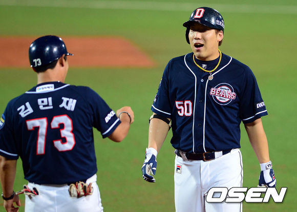 뒤를 이은 오재일의 좌전 안타가 나왔다. 다소 짧은 듯한 안타였으나 좌익수 김종호의 홈 송구가 크게 빗나갔고 그 사이 이종욱은 홈을 밟고 오재일은 2루까지 진루했다. 두산의 선취점. 그러나 홍성흔의 중전 안타 때 홈으로 뛰던 주자 오재일이 중견수 나성범의 호송구에 막히며 공수교대로 이어졌다.