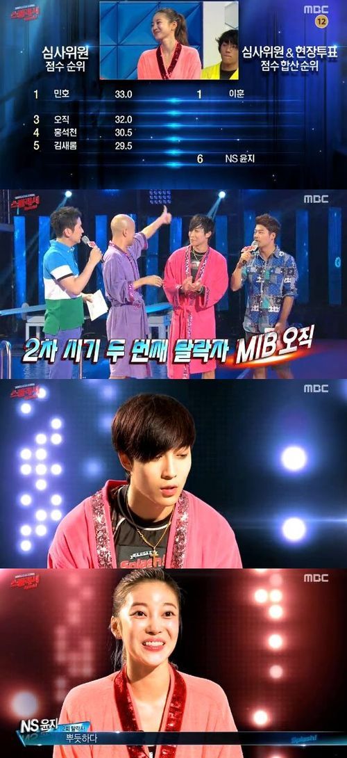 가수 NS윤지와 그룹 MIB 오직이 '스타 다이빙쇼 스플래시' B조 예선에서 탈락했다.