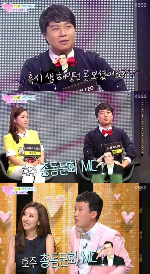 이에 MC들은 "혹시 샘 해밍턴을 못 봤냐"고 물었고, 맞선남은 "호주 총동문회를 가면 샘 해밍턴이 MC를 본다"고 말해 눈길을 끌었다.